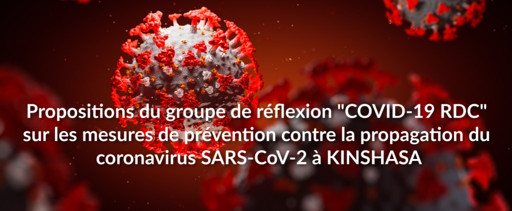 Le présent document est une série de propositions[1] que le groupe de réflexion « COVID-19 RDC[2] » soumet aux différents interlocuteurs concernés par la riposte au coronavirus SARS-CoV-2 dans la ville province de Kinshasa, épicentre de la pandémie en République Démocratique du Congo, à savoir : les différentes autorités politiques, les autorités administratives de la ville ainsi que tous les administrateurs des entreprises publiques et privées, les médias, les responsables des églises, les artisans, les artistes et toute personne pouvant apporter son expertise dans la lutte contre ce virus.